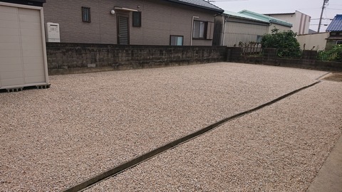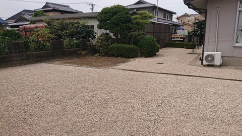 ようやく完成したH様邸での防草シート化粧砂利施工です。 3週間ぶっ通しで(雨で防草シートのテープが貼れない為1日だけ休み)、早い日は3時起き、しかも残土12t 砂利も12t 一輪車での出し入れなので、過酷な仕事でした。 除草(草抜き) 抜根するとちょっとした公園ぐらいの広さがあり防草シートだけで3日ぐらい、砂利搬入で2日半ぐらいかかりました。 H様には私に任せると言ってもらっているので化粧砂利の方は、柿市石材さんにて5分程の伊勢砂利を使い一部残した畑は玄武岩で囲いお父様が大事にしていたのでと2本は残して欲しいとH様のご要望でした。 除草(草抜き)→整地→転圧→防草シート→化粧砂利とその度その度にH様には非常に喜んでもらいスーパードライ ポカリ頂きました。 ありがとうございました。