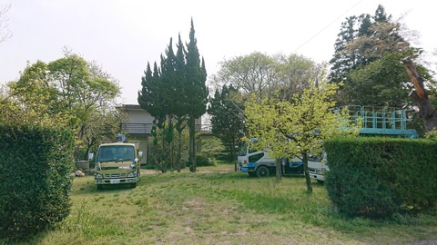 紅葉抜根 剪定 消毒作業 ヤマモモ クロガネモチ
