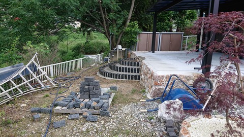 和モダン坪庭作庭 芝張り 防草シート化粧砂利